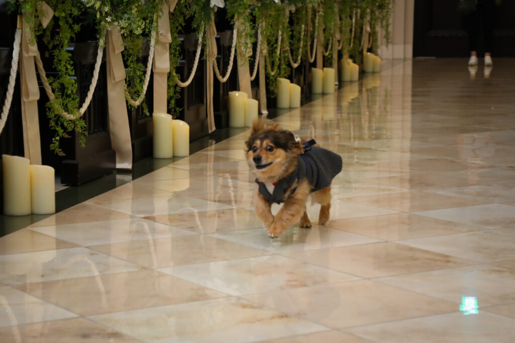 指輪を背中に乗せてバージンロードを歩く姿はとてもかわいらしくて